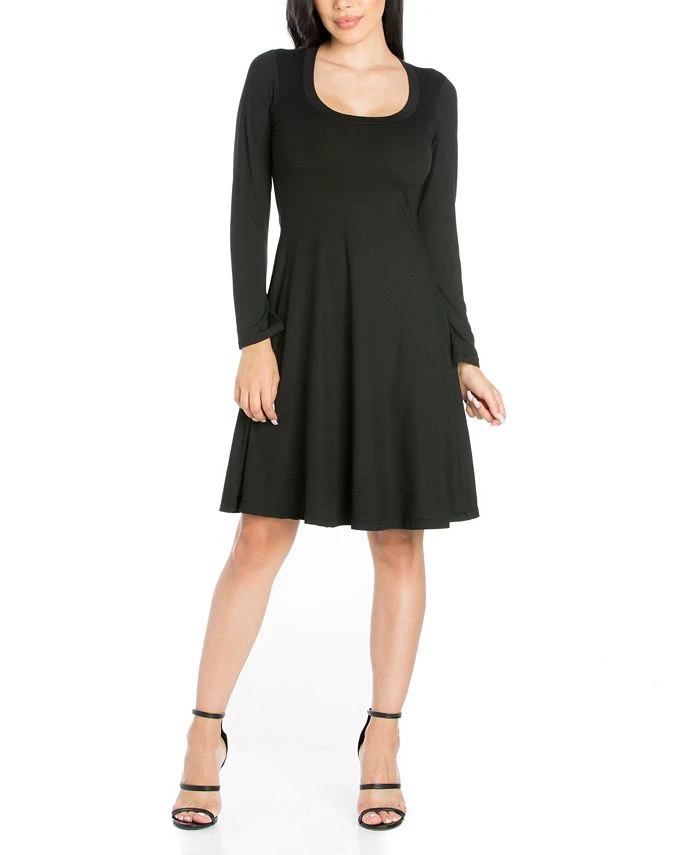 This classic A-line shape will always be in style The sleek look has a rounded scoop neckline and long fitted sleeves. This cute and comfortable mini dress is sure to become your new favorite outfit.