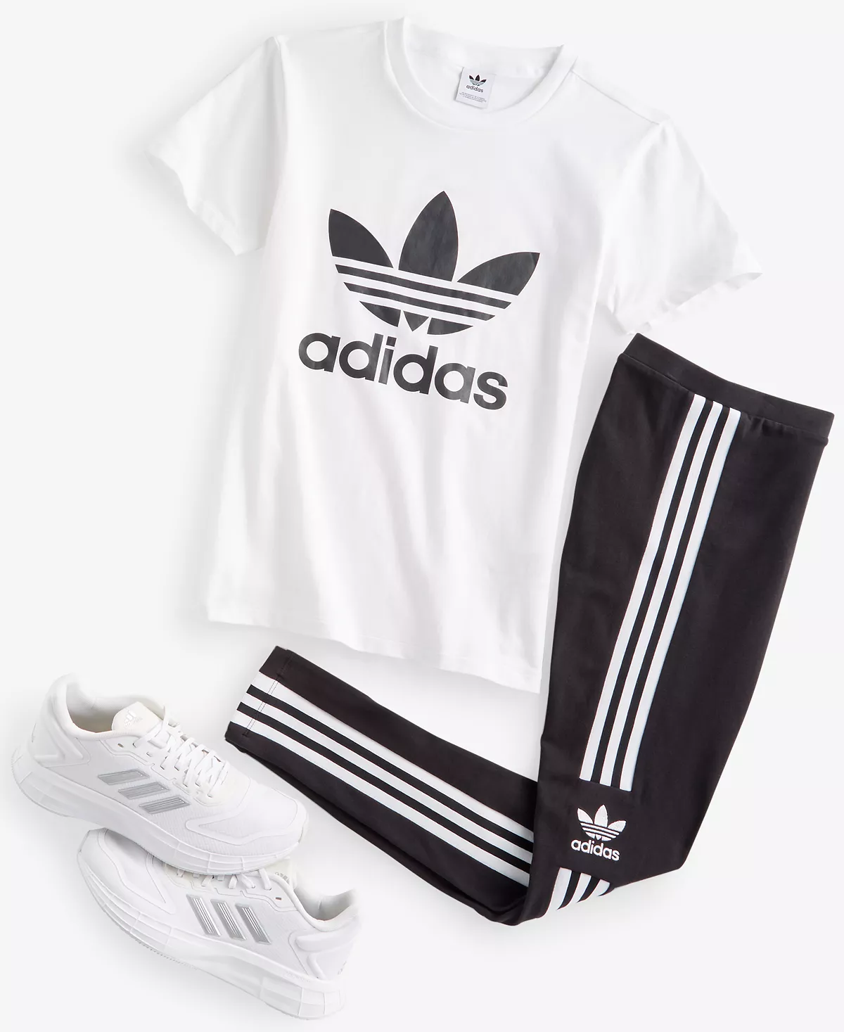 It’s the sporty look you can rock at the gym or while running errands, this T-shirt and leggings are the epitome of quintessential-cool adidas style.