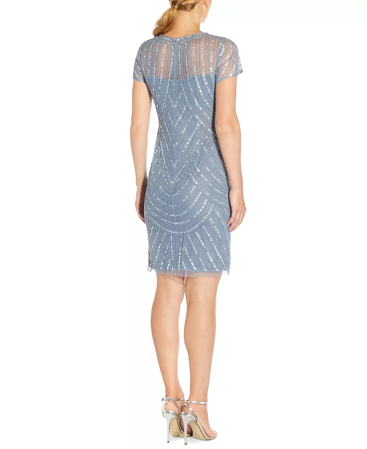 Be absolutely stunning for special events in this Adrianna Papell dress. Sleek in a sheath silhouette, the look gets a refined finish from delicate allover embellishment.