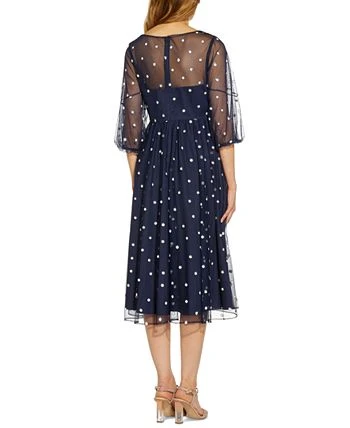 Subtly shiny embroidered dots and a swingy fit & flare silhouette set in motion this gorgeous formal dress by Adrianna Papell.