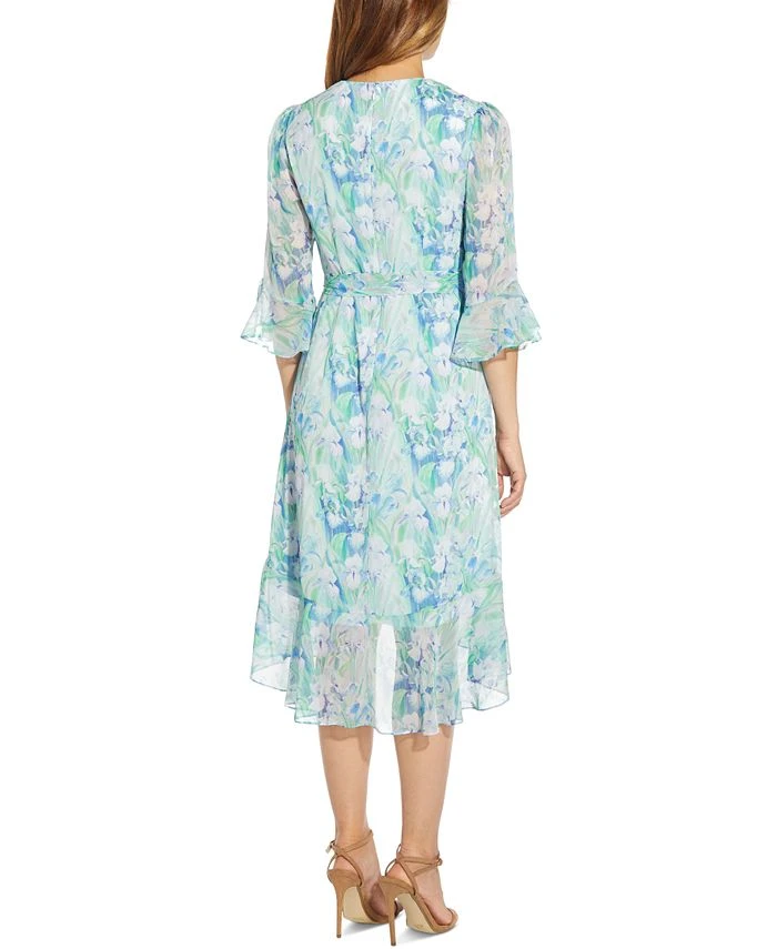 Watercolor-inspired florals and a flowing hem draw the eye in this flattering wrap-style dress from Adrianna Papell.