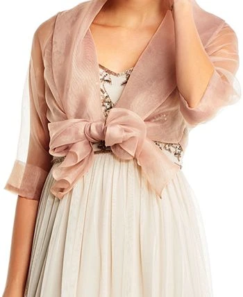 Sheer glamour: Adrianna Papell’s organza cover-up features a sophisticated cascade front.