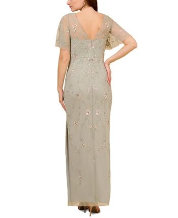 Floral beading lends a feminine flourish to Adrianna Papell’s flutter-sleeve gown.