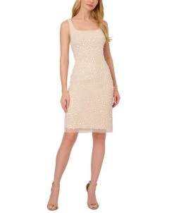 Make your mark in this women’s dress from Adrianna Papell. Beaded allover and fashioned in a sheath silhouette for a party-ready finish.