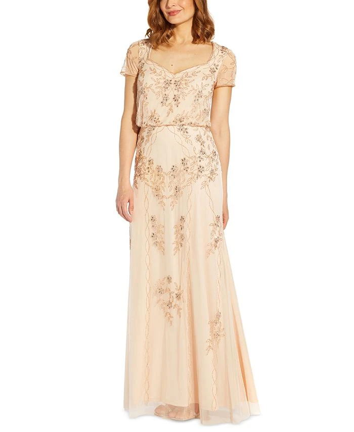 Adrianna Papell’s embellished blouson-bodice gown makes a stunning choice for your next special event.