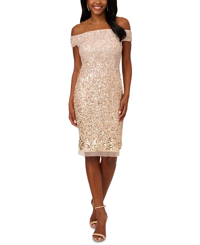 Nothing feels quite as glamorous as a dress that sparkles all night long like this off-the-shoulder piece from Adrianna Papell.