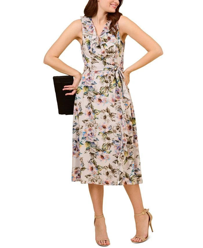 Get ready to celebrate in style with Adrianna Papell’s floral-print faux-wrap dress.