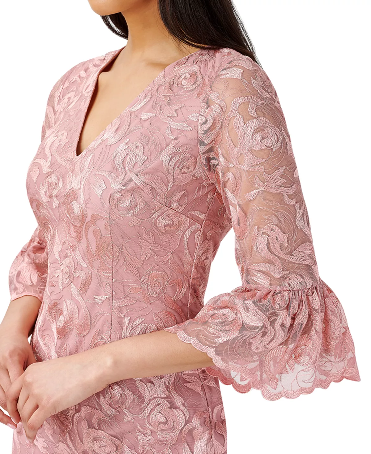 The lacy grace of this Adrianna Papell sheath is finely finished with soft scalloping at the bell sleeves and hemline.