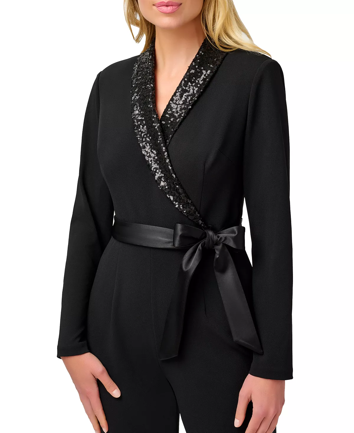 Shine at your next formal affair in this sequined-collar jumpsuit from Adrianna Papell.