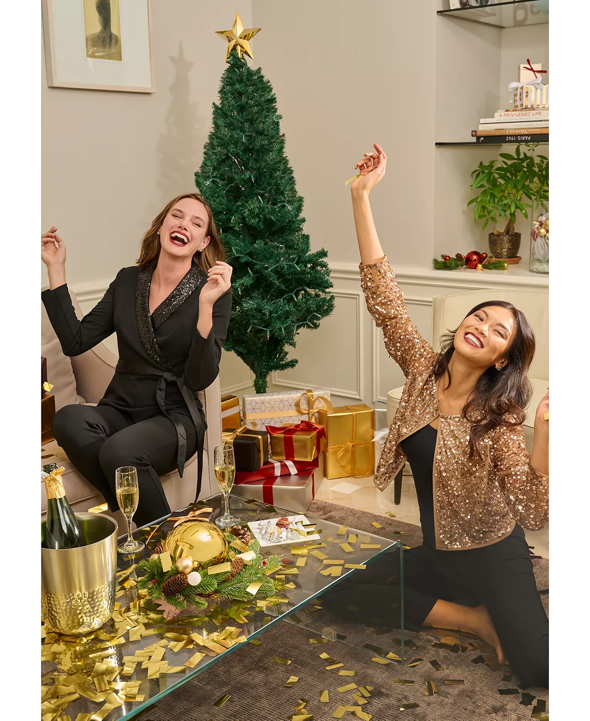 Layer on instant sparkle with Adrianna Papell’s sequined jacket.