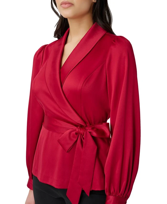 Wrap up an elegant evening look with this sophisticated style from Adrianna Papell. A shawl collar and waist-cinching tie only enhance this party-perfect blouse.