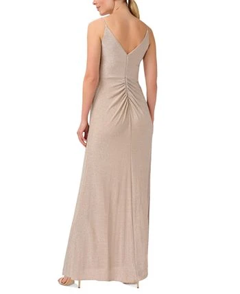 Embrace a magical mermaid vibe with this gorgeous gown from Adrianna Papell. Its twisted front detail and shimmery metallic finish will earn you all kinds of compliments at your next party.