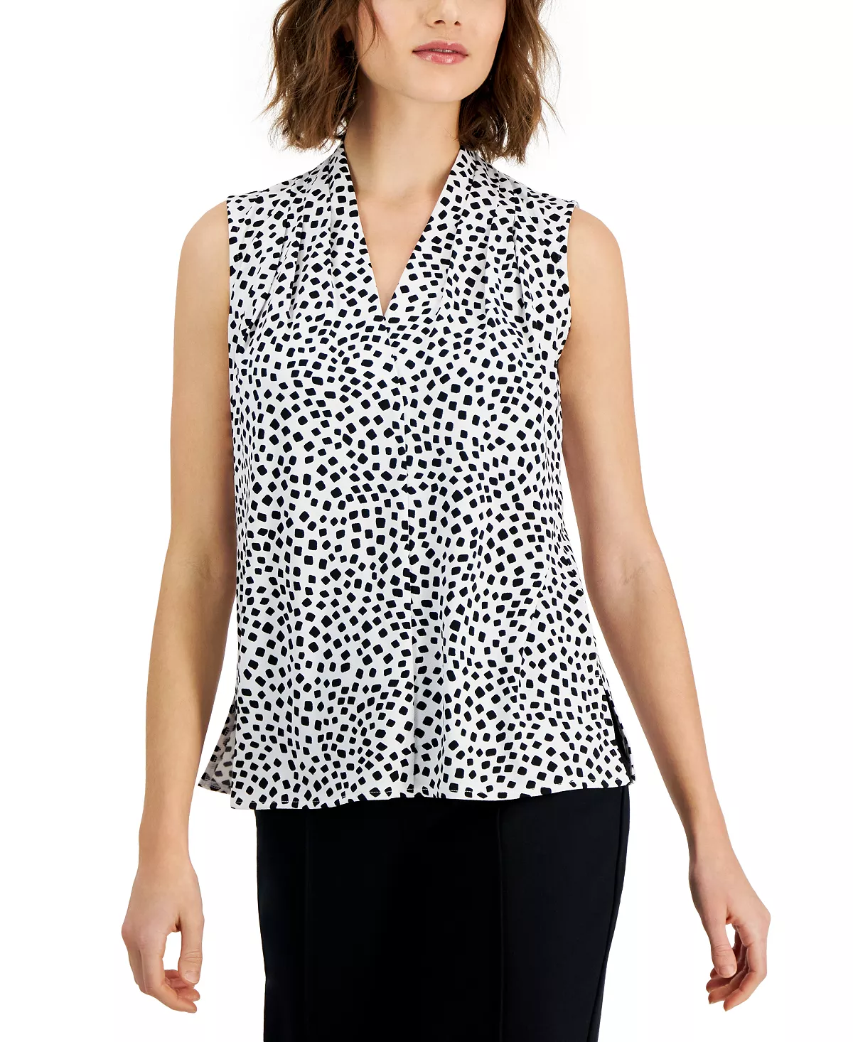 Explore the stylish possibilities with this sleeveless Alfani top, a versatile piece polished with pleats at the neckline.