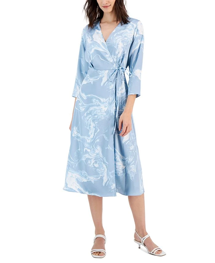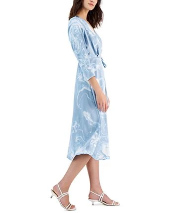 Add sophisticated style to your wardrobe with Alfani’s striking wrap dress. The alluring marble print paired with the wrap silhouette boasts a poised and confident edge to your everyday style.