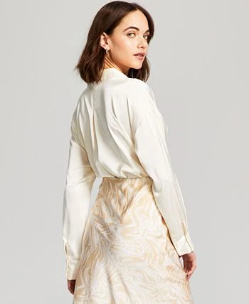 Sleek, soft and fluid this satin shirt by And Now This is finished in a draped silhouette, for a gorgeous look that always adds movement and shine to your ensemble.