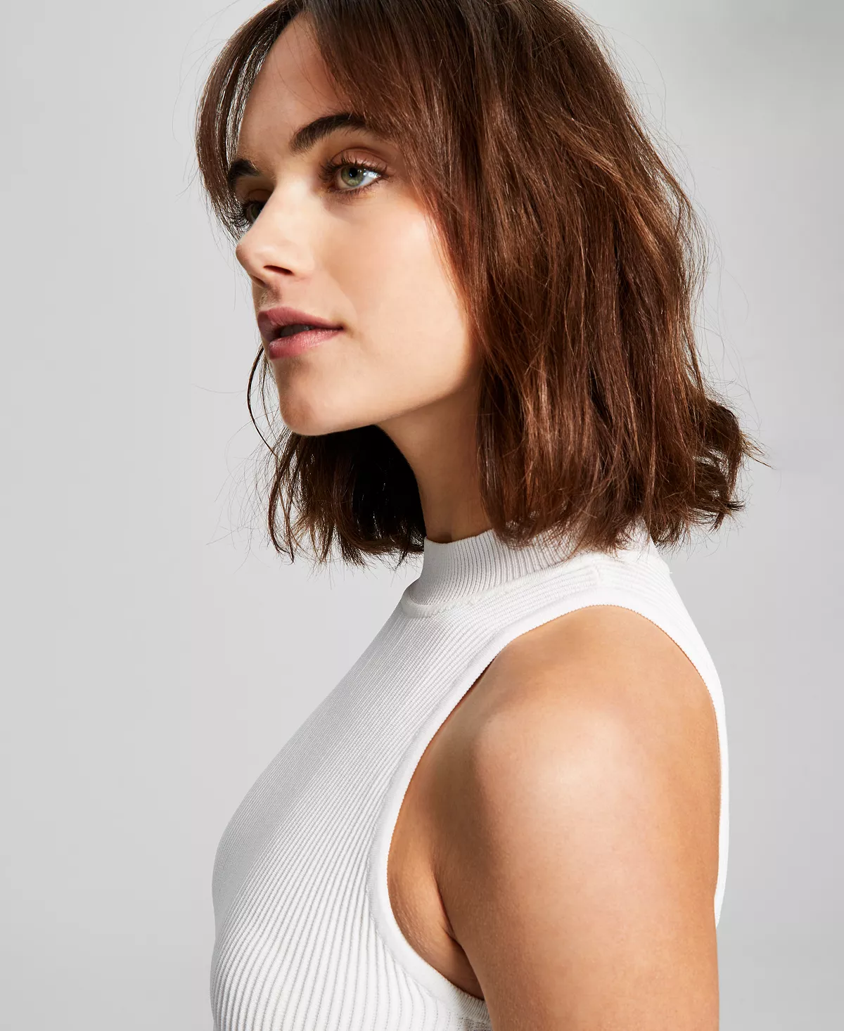 And Now This brings us the ideal topper for so many pant options, finished with a polished mock neck silhouette, endless styling opportunities await thanks to this sleeveless number.