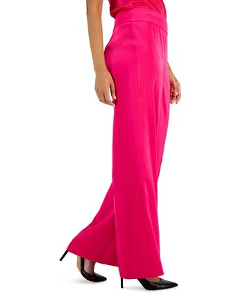 Anne Klein presents chic, polished style with these high-rise pants in a flowing wide-leg silhouette.