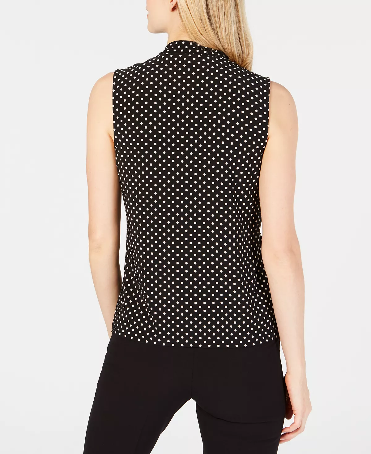 Polished in polka dots, this sleeveless top from Anne Klein is styled with a tie at the neckline for a professional touch.