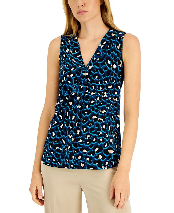 Anne Klein brings a pop of color and pattern to your workweek look with a cheetah-print V-neck tank.