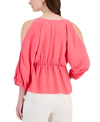 A unique twist on the classic peplum-hem top, Anne Klein’s version features cold-shoulder 3/4-length sleeves.