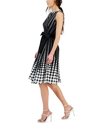 Take your boardroom look to the next level in this chic printed cotton fit & flare dress from Anne Klein.