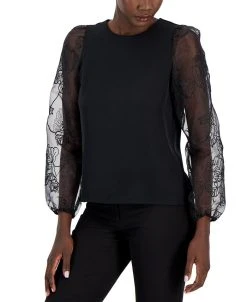 Charming puff sleeves frame this women’s top from Anne Klein, wear it alone or under a blazer for a layered finish.