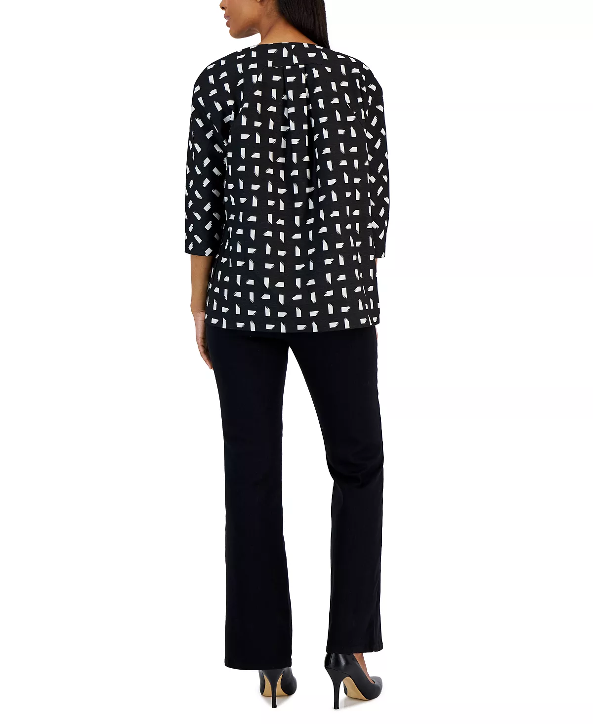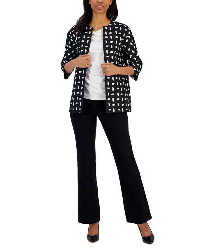 Denim done right. Work these flare-leg denim pants into your office rotation elegantly with Anne Klein’s sophisticated pair. The jacquard topper and cowlneck blouse elevate the look even more.
