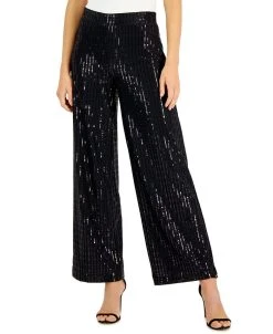 Let the black pants be the star of show! Anne Klein elevates the classic pants with a shimmering, shining finish, be ready to dazzle the room in this statement piece, cut in a wide-leg silhouette.