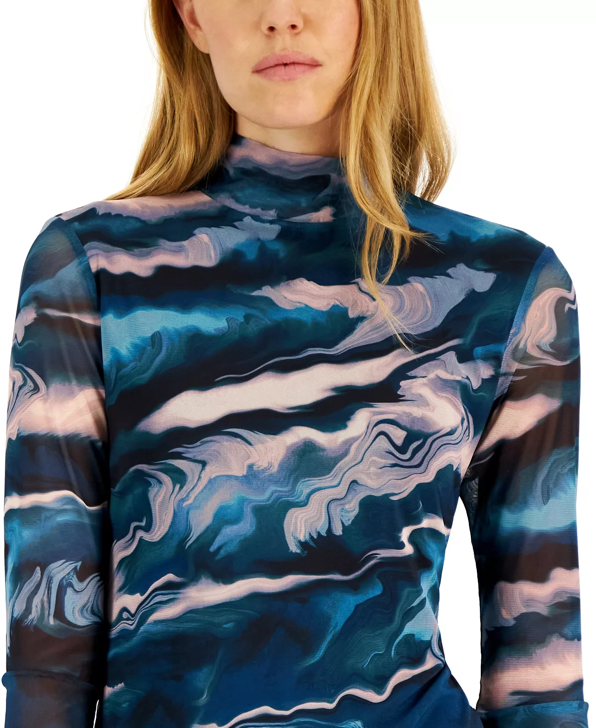 A fitted silhouette lends a sleek and sophisticated edge to this mock neck top, whilst a mesmerizing water-like print finishes this statement piece by Anne Klein.