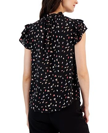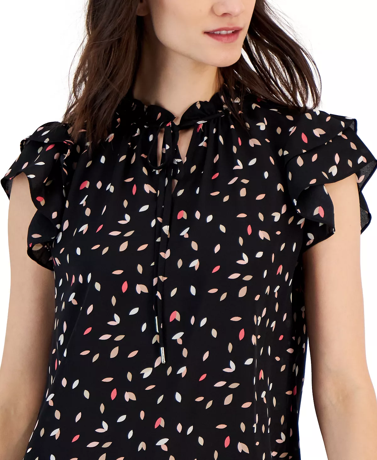 Anne Klein’s printed blouse lends movement to your look with a ruffle collar and tiered flutter sleeves.
