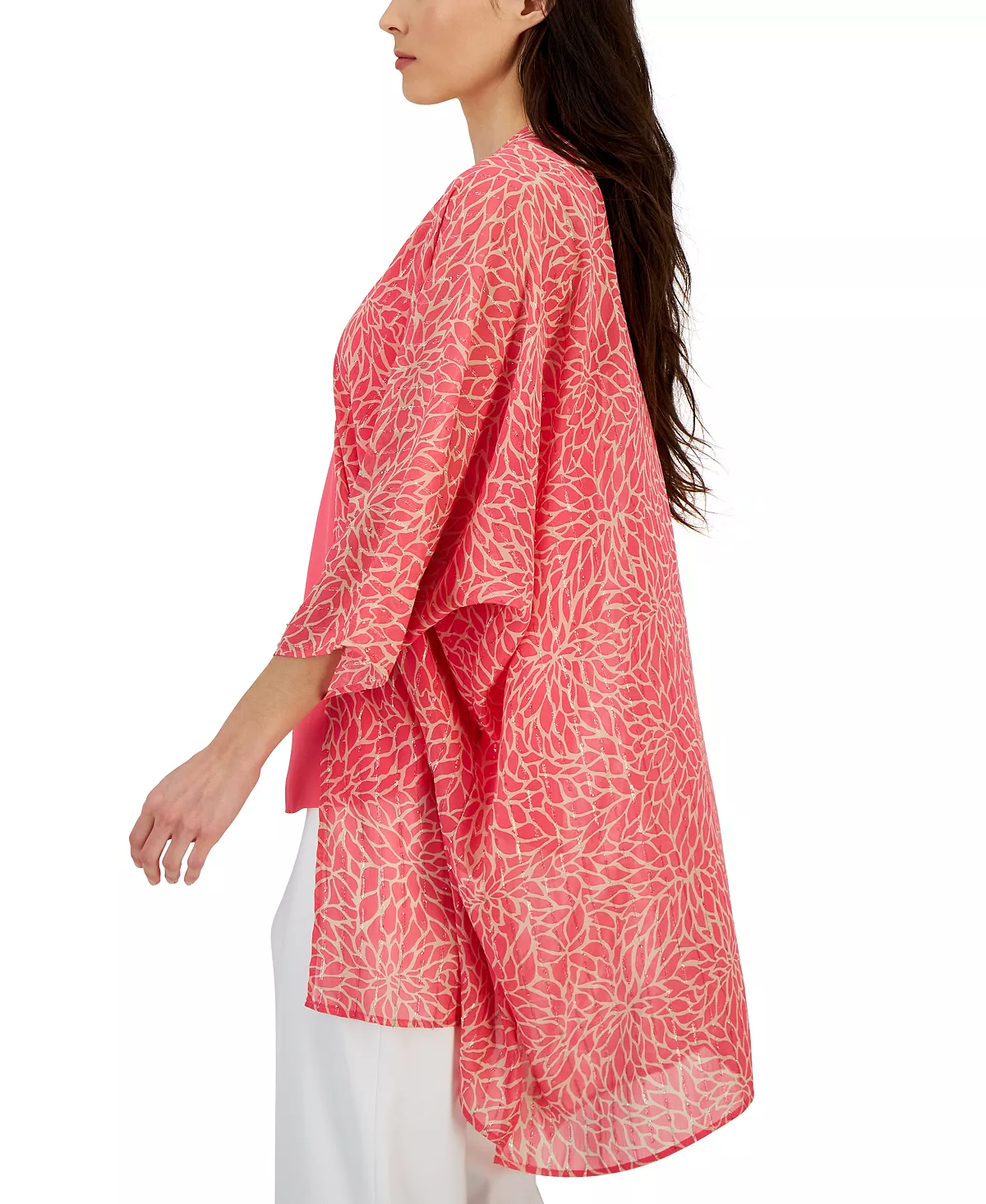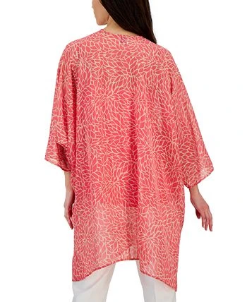 For a chic top layer, Anne Klein has you covered with this printed open-front sheer cardigan.