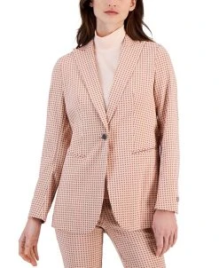 A stylish square foulard print adds a menswear-inspired touch to Anne Klein’s stretch-enhanced, single-button blazer.