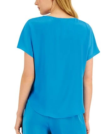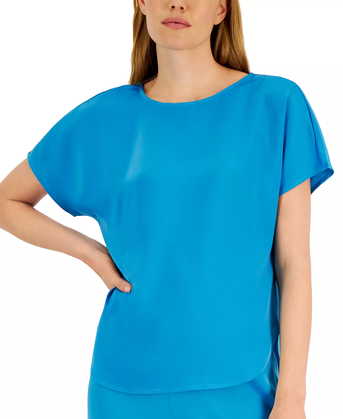 Perfect for layering, this sleek, satin blouse is designed for a relaxed fit so that this professional look stays as comfortable as it does stylish.