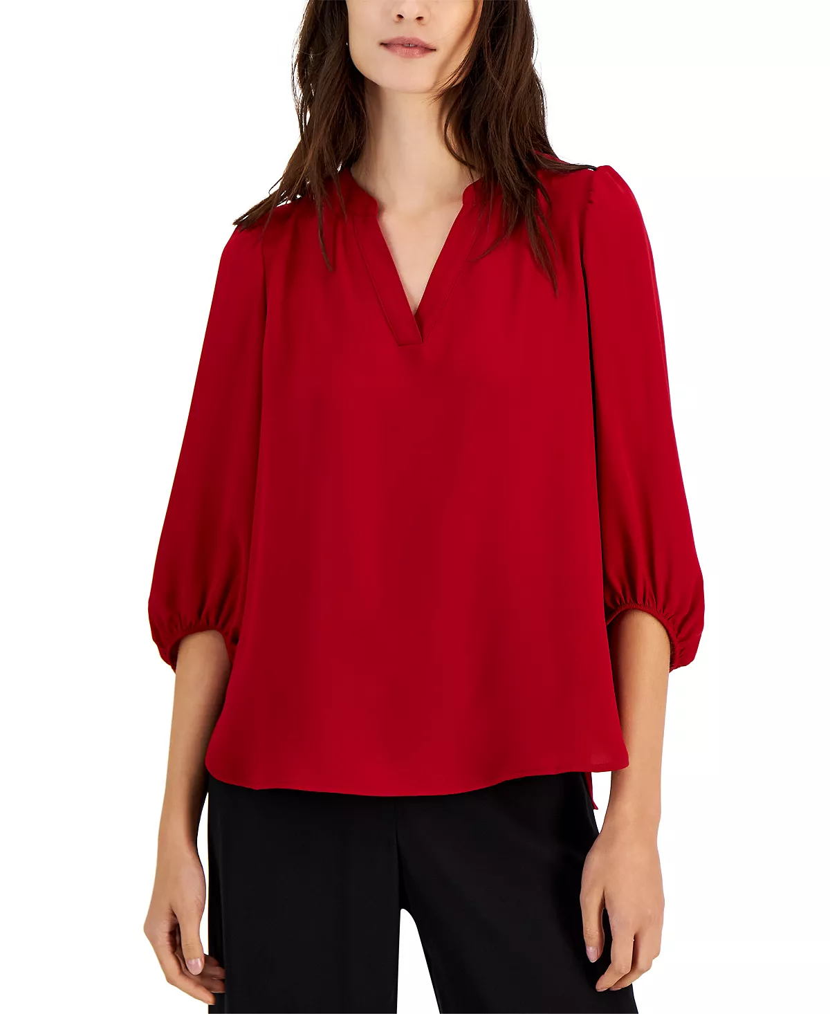Anne Klein adds sophisticated style to your wardrobe with this split-neck 3/4-sleeve top.