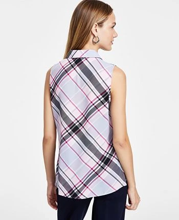 Dynamic on the diagonal, the oversized plaid of this Bar III collared button-up top adds striking style to workday wear.
