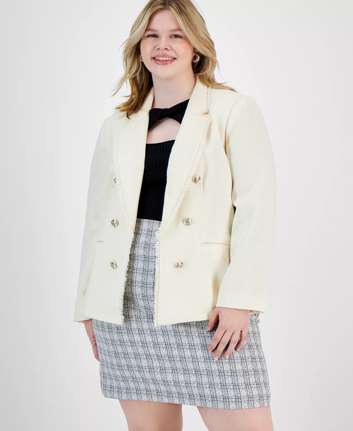 Be boardroom ready in this plus size blazer from Bar III. The clever faux double-breasted design makes it the perfect open-front blazer for layering.