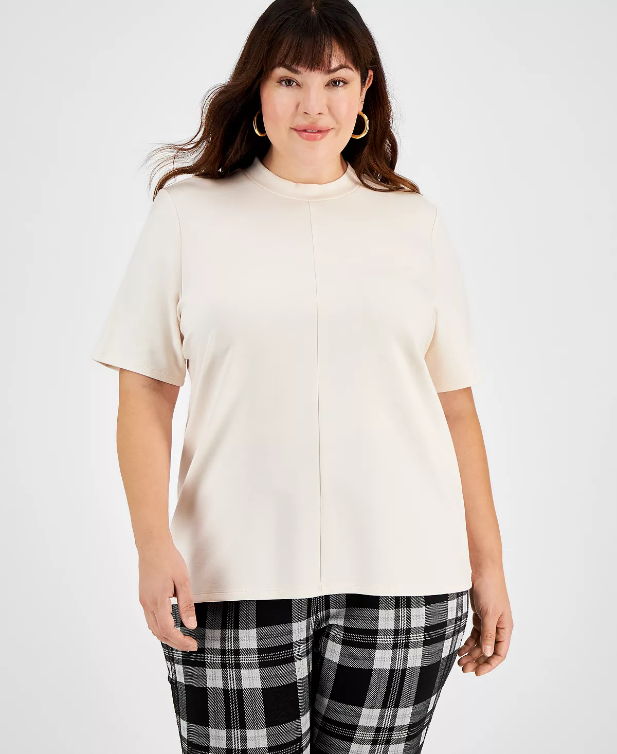 Sleek and sophisticated, this mock-neck top by Bar III pairs perfectly with all your favorite office looks.