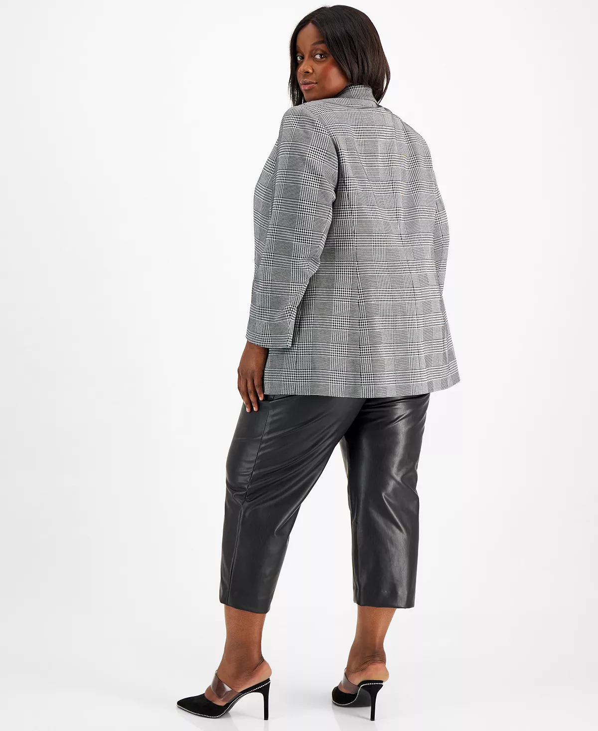 Step forward with your best impression with this polished look from Bar III, featuring a chic blazer, ruffle tie-neck, and stunning faux leather pants.
