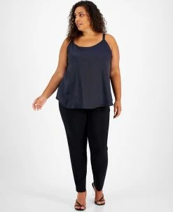 Versatile and polished in a solid hue, this plus size camisole top from Bar III features a flattering scoop neckline.