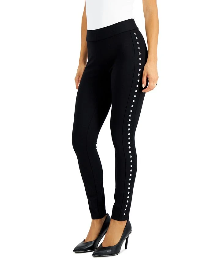 Dotted with dome-shaped studs from waistband to hem, these Bar III ponté-knit leggings are a shining example of a stylish way to update a wardrobe.