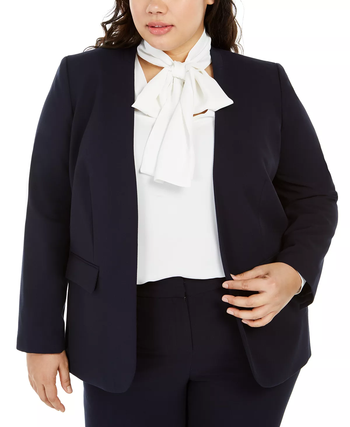 Prepped & polished. Tackle the workweek in sophisticated style with Bar III’s on-point suit combo, a structured suit and tie-neck blouse.