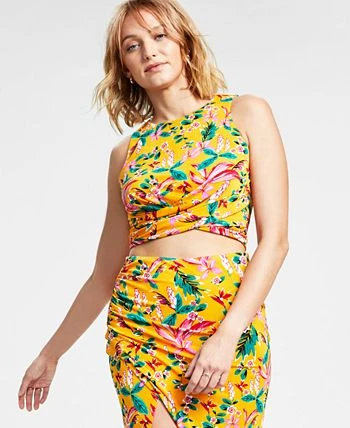 Perfect with jeans, this floral-print crossover crop top from Bar II is as chic as it gets!
