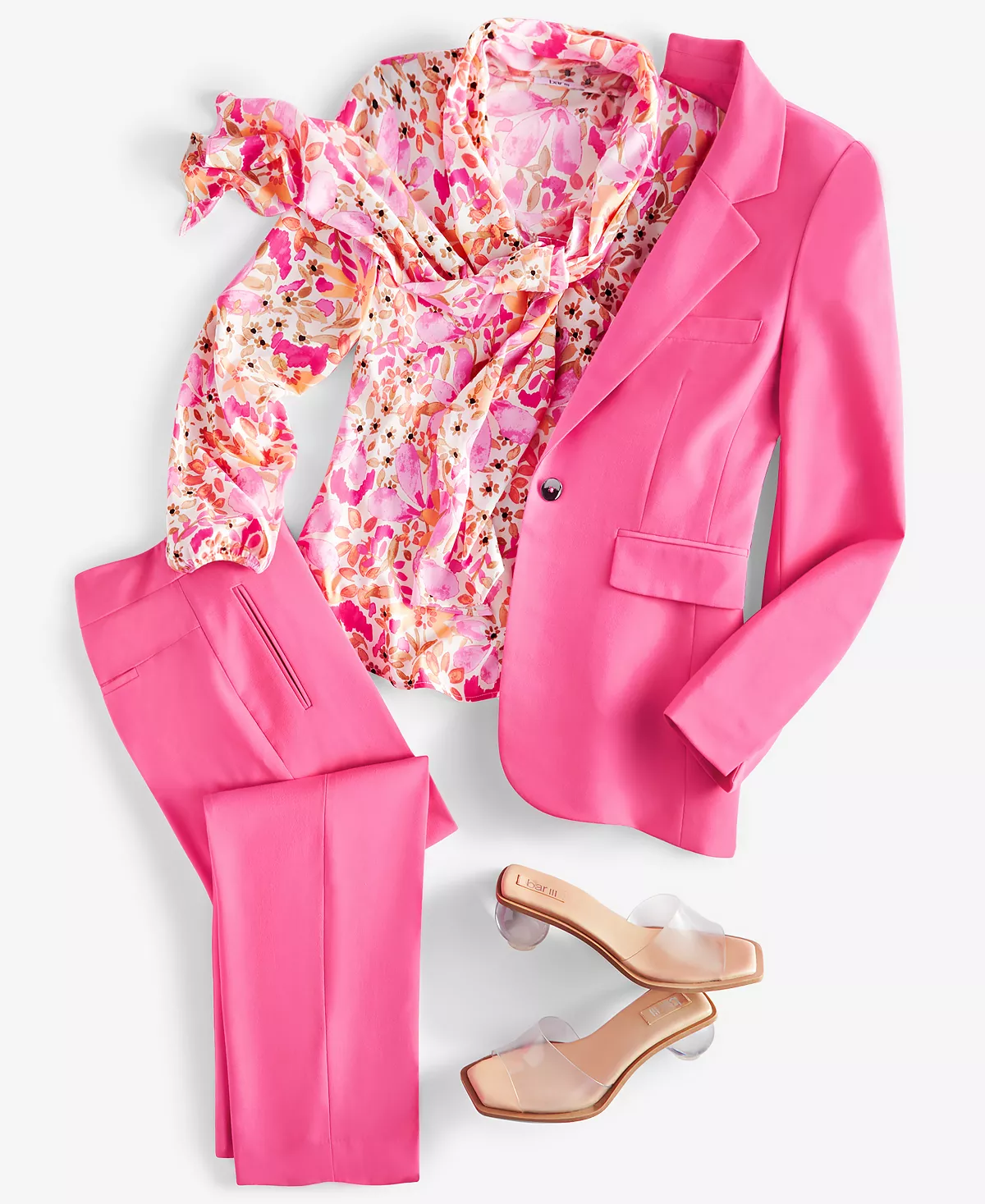 Amp up your femme factor with this tie-neck blouse from Bar III, blooming a floral print.