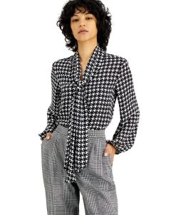 Add polish to any look with this sophisticated Houndstooth long sleeve top from Bar III.