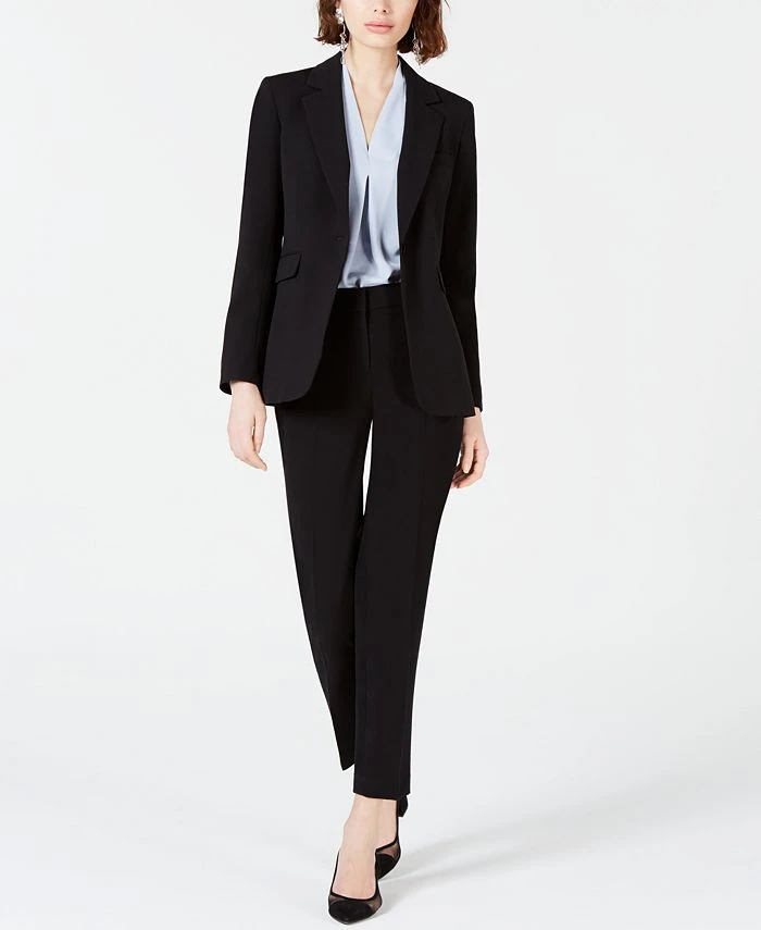 Bar III’s jacket, pants and inverted-pleat blouse offer a lesson in contemporary sophistication.