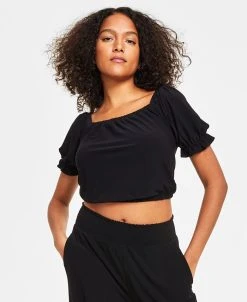 Perfect for warmer weather, this crop top by Bar III features feminine puff sleeves and a flattering square neckline.