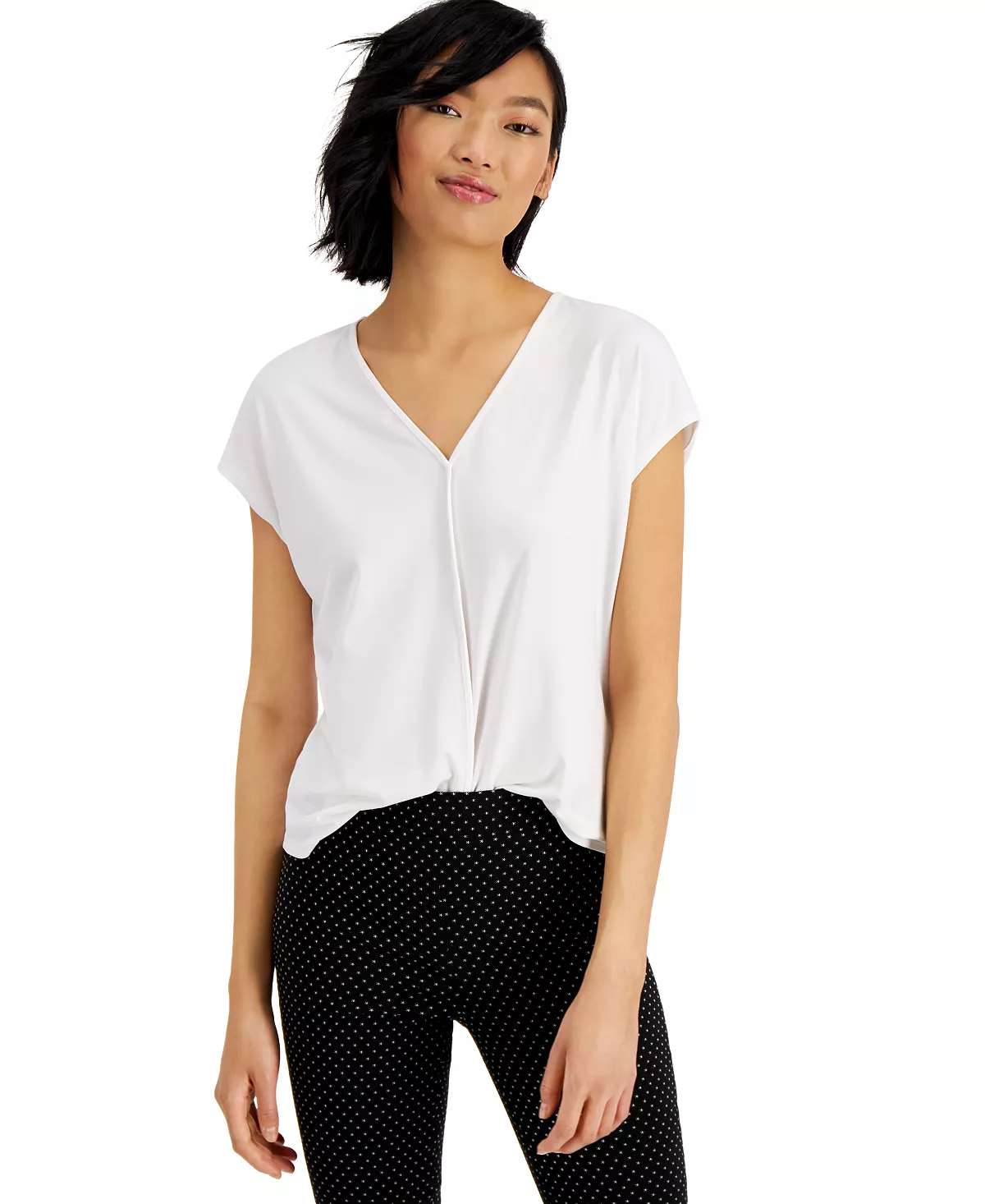 A fashion-forward twist on the T-shirt, this V-neck top from Bar III features a prominent seamed detail at the front.