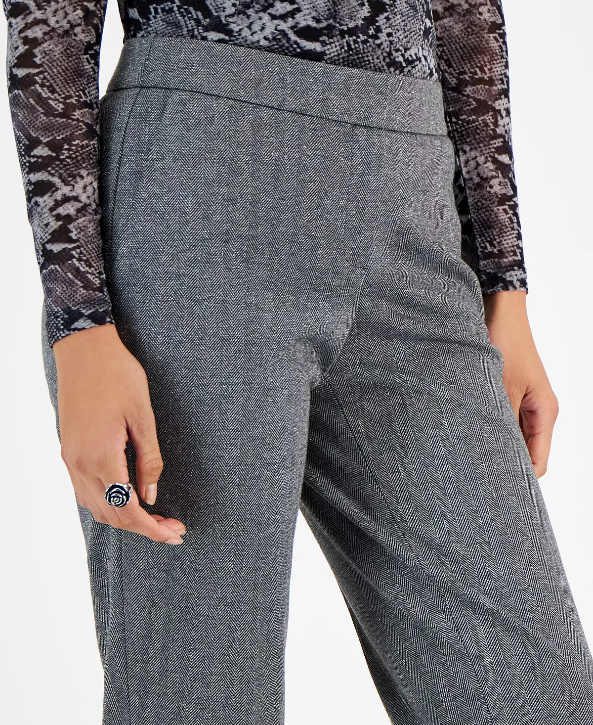 Tailored in timeless herringbone, with a touch of shimmer and a hint of stretch, these Bar III straight-leg ankle pants refresh a workday wardrobe.