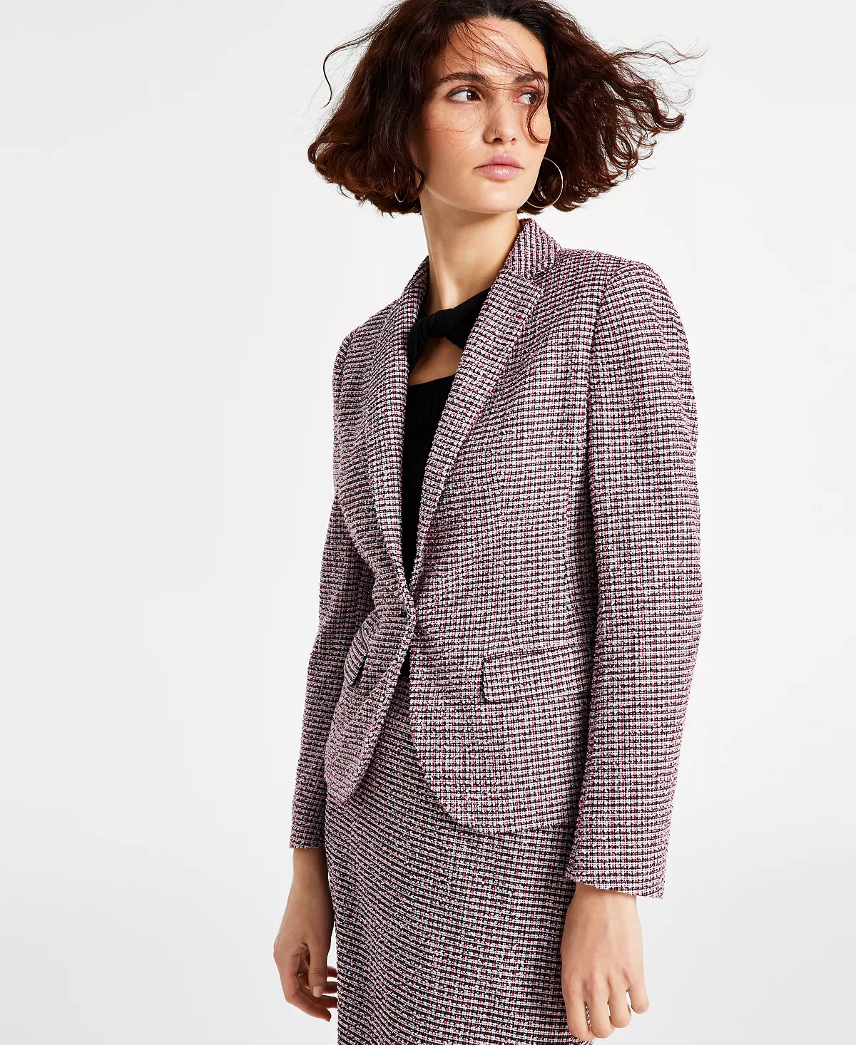 Bar III brings polished, chic office-ready style with this fashionable single-button blazer.