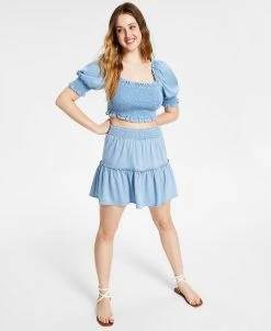 You’ll love the romance and comfort of a stretchy smocked body on this cute cropped top by Bar III.